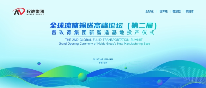 2025年10月28日至29日,全球流體輸送高峰論壇(第二屆)暨玫德集團(tuán)新智造基地投產(chǎn)儀式在山東臨沂即將召開(kāi)!