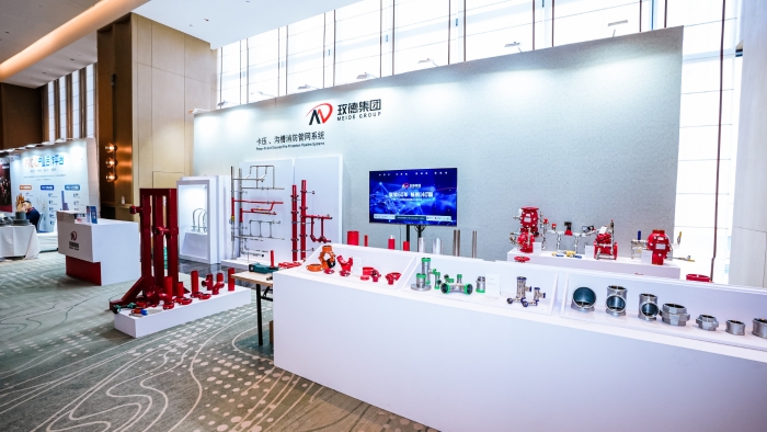 作為本次盛會的承辦方之一,玫德集團不僅是會議的重要組織者,更以系統(tǒng)性、創(chuàng)新性的產(chǎn)品與技術(shù)展示,成為會場內(nèi)外的焦點。在專題展示區(qū),玫德集團集中呈現(xiàn)了在消防流體控制與系統(tǒng)集成方面的全鏈條產(chǎn)品矩陣。齒環(huán)卡壓管件與碳鋼卡壓系統(tǒng)展現(xiàn)高密封性與抗震抗壓能力;溝槽管件及卡壓系統(tǒng)適用于復(fù)雜建筑結(jié)構(gòu)與快速裝配需求;噴淋頭、預(yù)作用報警閥、雨淋閥、濕式報警閥、信號蝶閥等關(guān)鍵消防控制部件,體現(xiàn)玫德集團在自動滅火與智能預(yù)警方面的技術(shù)積累。